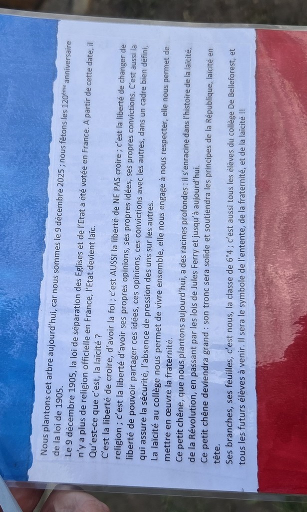 - Plantation d'un arbre de la laïcité,