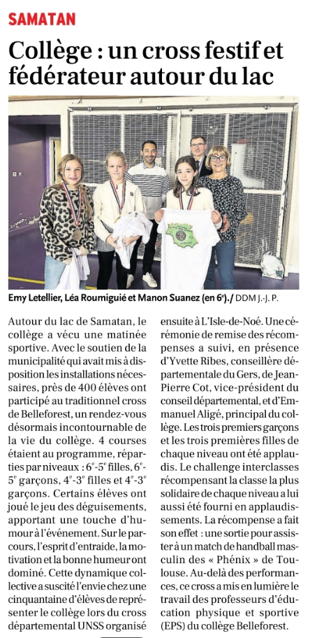 Du 23 au 25 septembre: journées d'intégration des 6e. Activités physiques au lac, découverte de Samatan, médiathèque, librairie, porter secours, Phare, sortie au site paléontologique de Sansan.